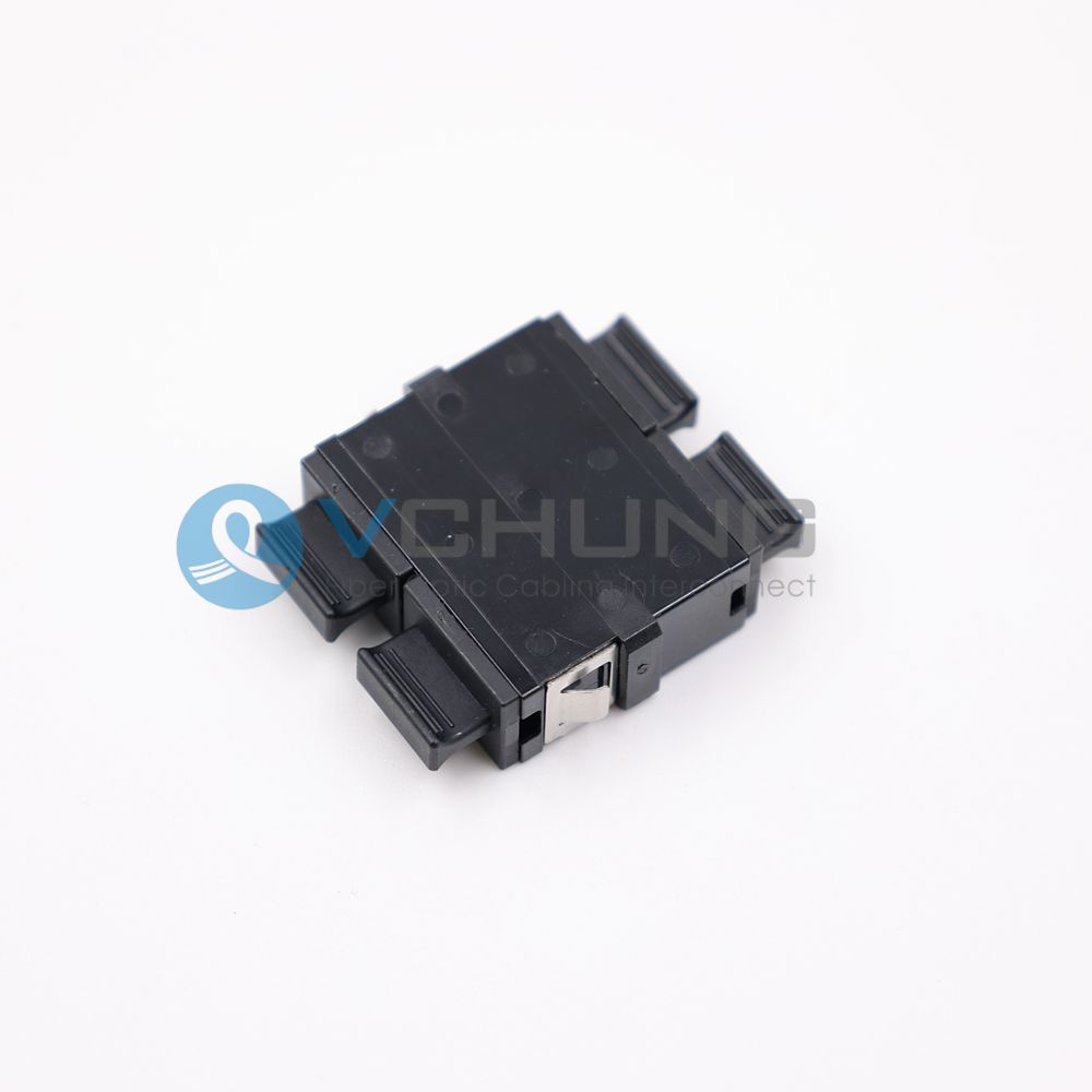 VCHUNG’s MPO Duplex Adapter, 16-Fiber, Black color, Flangeless – the compact, high-density solution for seamless MPO/MTP® connections. Precision-molded thermoplastic body in matte black withstands harsh data-center environments while remaining invisible in dark panels. Dual sleeves align 16 fibers within ±0.2 dB typical loss, supporting 40/100/400 GbE and beyond. Snap-fit, no-ear design maximizes rack space and installs from the front or rear; no screws, no extra tools. Compatible with all IEC-61754-7 compliant MPO connectors, PC or APC, single or multimode. RoHS & REACH certified.