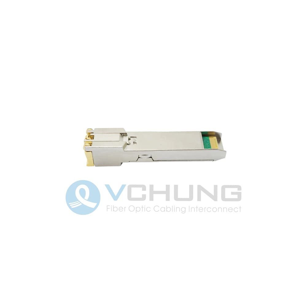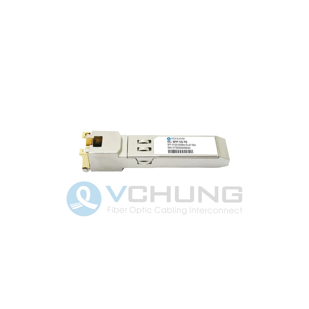 VC- SFP-1G-TE Copper Small Form Pluggable (SFP) transceivers are high performance, cost effective module compliant with the Gigabit Ethernet and 1000- BASE-T standards as specified in IEEE 802. 3-2002 and IEEE 802.3ab, which supp-Orting 1000Mbps data- rate up to 100 meters reach over unshielded twisted-pair category 5 cables. The module supports1000 Mbps full duplex data-links with 5-level Pulse Amplitude Modulation (PAM) signals. All four pairs in the cable are used with symbol rate at 250Mbps on each pair. The module provides standard serial ID information compliant with SFP MSA, which can be accessed with address of A0h via the 2wire serial CMOS EEPROM protocol. The physical IC can also be accessed via 2wire serial bus at address A0h.